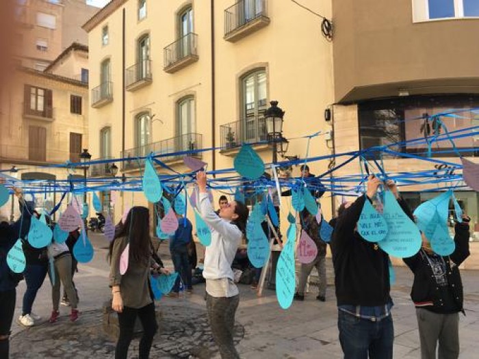 L’actuació s’ha realitzat aquest dijous al matí a la plana de l’Om i ha anat a càrrec de grups de dones de la ciutat (entitats de dones i grups de manualitats) i dels alumnes de primer del mòdul d’Animació Sociocultural de l’Institut Guillem Catà. Amb aquesta posada en escena han volgut donar a conèixer la lluita que protagonitza el documental “Las Damas Azules” i que es podrà veure el proper dilluns 19 de març a les 19.30h a l’auditori de la Plana.