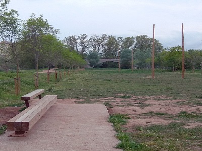 S’ha realitzat una plantada d’arbres, amb el seu corresponent sistema de reg, per marcar una zona de joc lliure amb bancs per seure damunt de bases de formigó. El tractament que es donarà a l’espai serà d’anar segant l’herba. Hi hauran dos elements de fusta per tal de fomentar el joc dels infants. L’objectiu ha estat crear una zona de joc i d’estada acollidora.