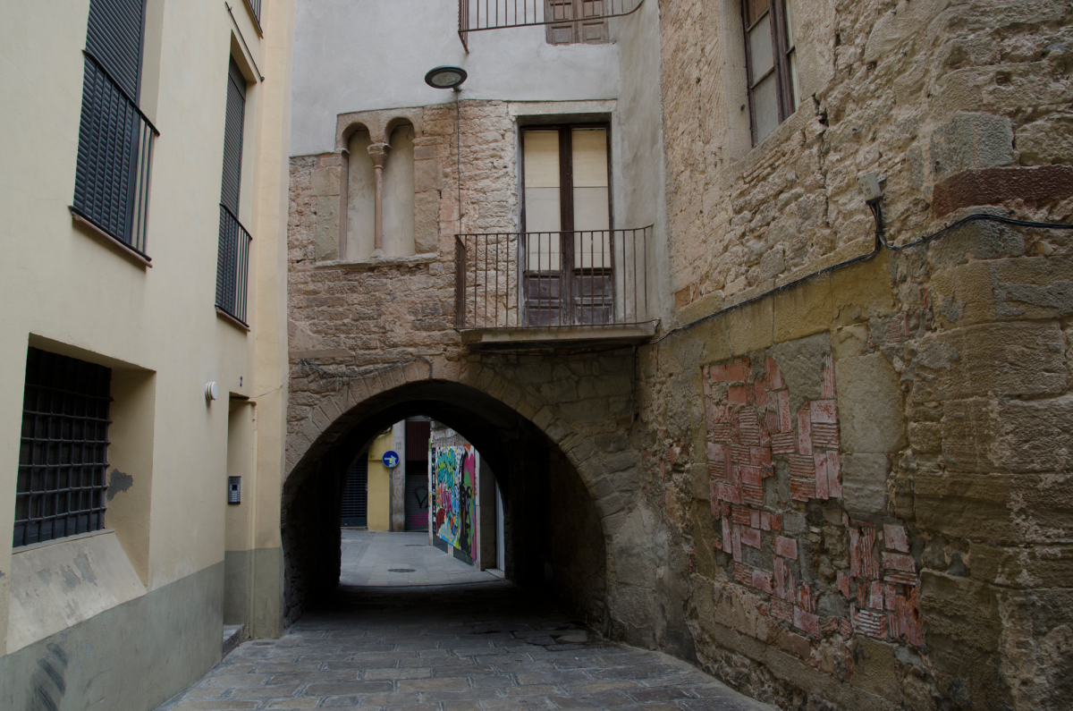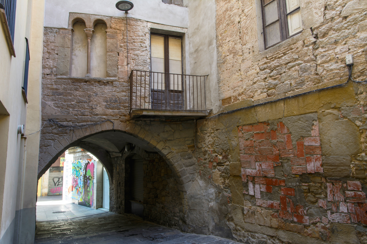 Hi destaca els mateixos arcs que sostenen una part de l'edifici per sobre del carrer d'en Botí i la finestra doble de la P1 amb una esvelta columna llisa que sosté dos arcs de mig punt fets d'una sola peça de pedra cadascun. Tot i que l'edifici havia estat arrebossat, el parament de sobre els arcs i el de la P1 és força regular, especialment les dovelles de l'arc