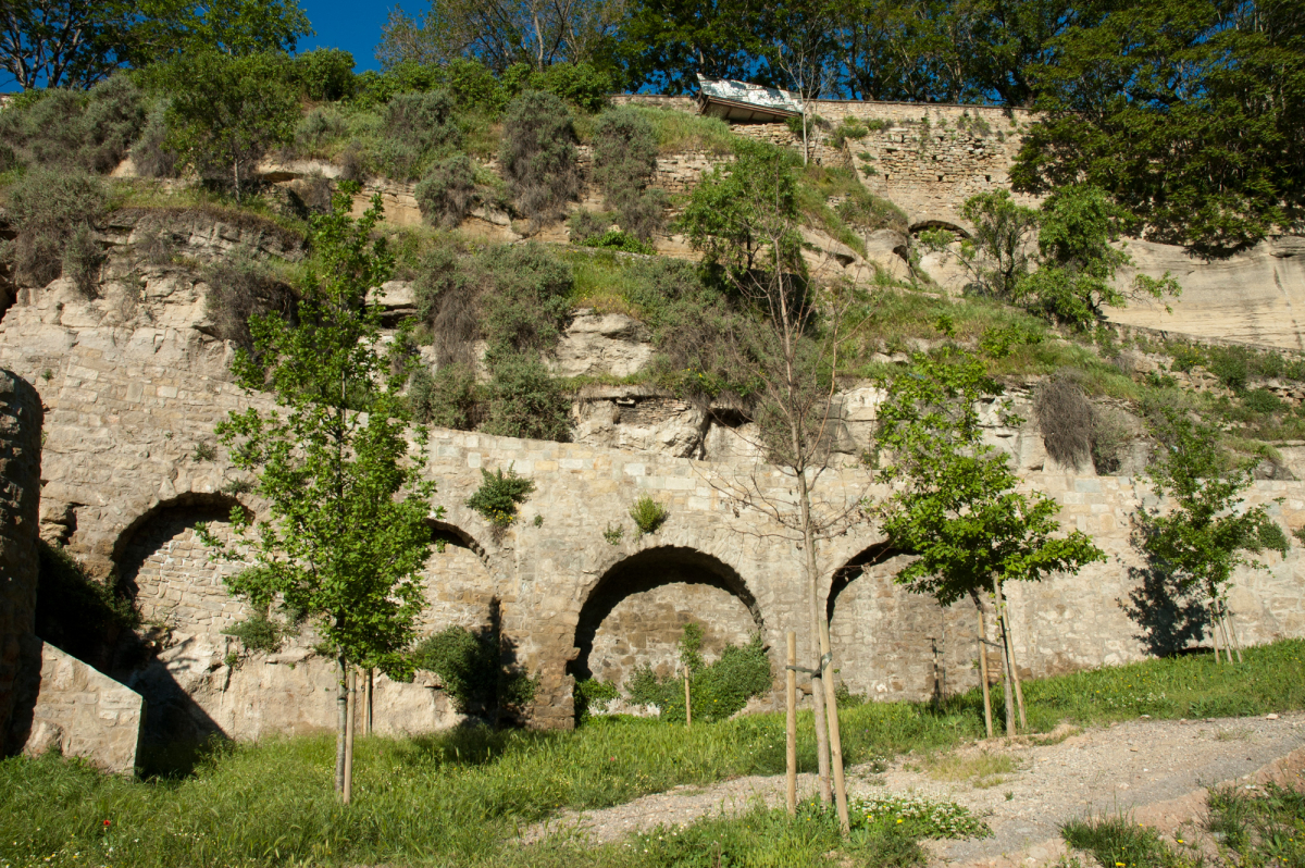 Camí popular construït en el segle XVIII que està situat en el penya-segat del Puigcardener, just a sota de la Seu de Manresa, en una zona de fort desnivell. A la part superior del camí hi ha estrats de roca amb vegetació natural i és difícil d'enjardinar. A la part inferior s'han eliminat les edificacions que tapaven els arcs i es poden veure completament.