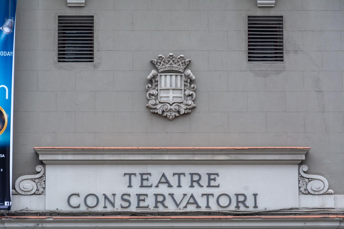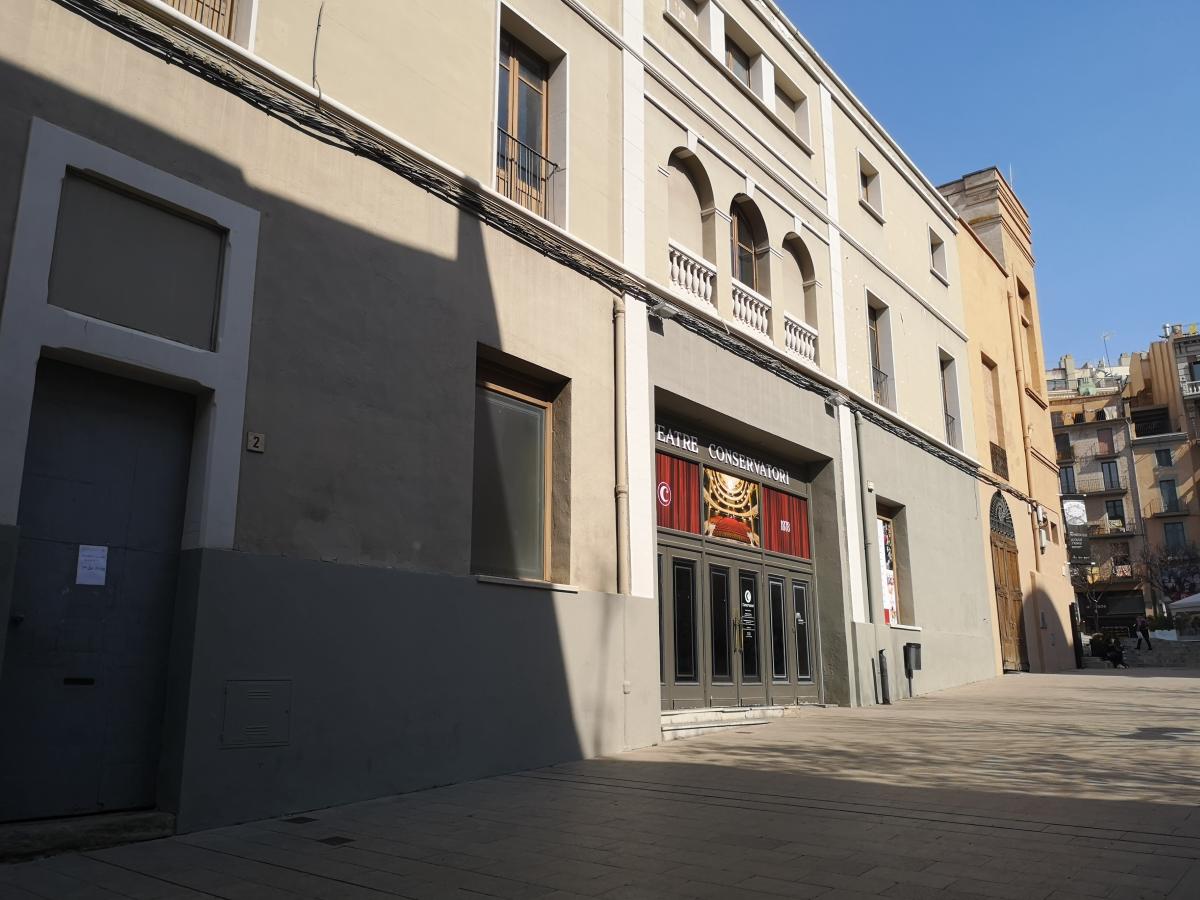 Edifici públic de caràcter monumental, aïllat i format pel cos del Teatre més restes de l'antic convent dels Dominics i altres dependències municipals. Es tracta d'una obra major on hi destaca la peça del teatre, la sala del qual ocupa el pati del claustre de l'antic convent, més un cos allargat amb façana al carrer de Jaume I, que conté el Conservatori Municipal de Música i altres dependències municipals. Aquest cos presenta una disposició de planta baixa i pis. La façana que dóna al carrer de la Muralla del Carme és d'estil neoclàssic, amb predomini del ple sobre el buit. Accés centrat amb tres finestres en arc al pis superior i frontó triangular en retranqueig.