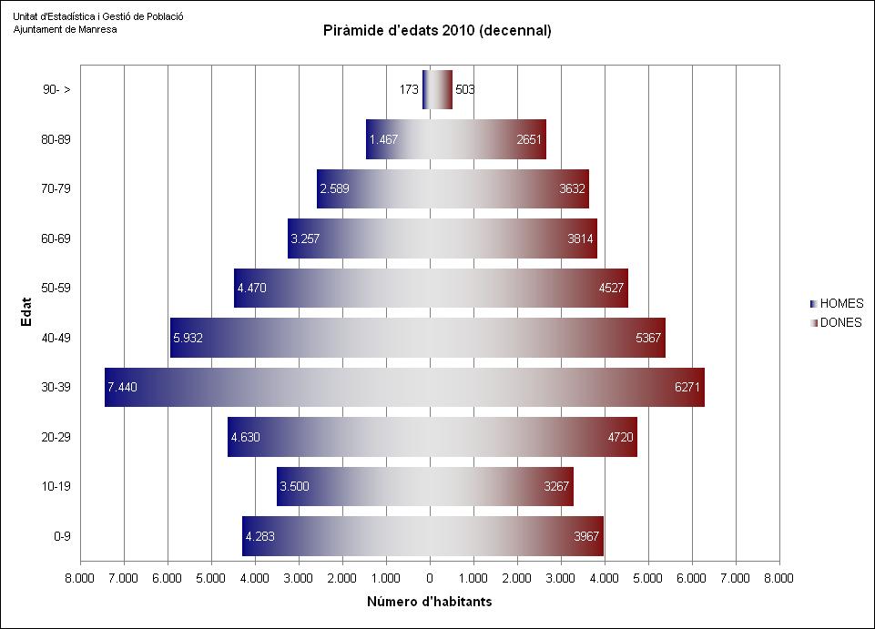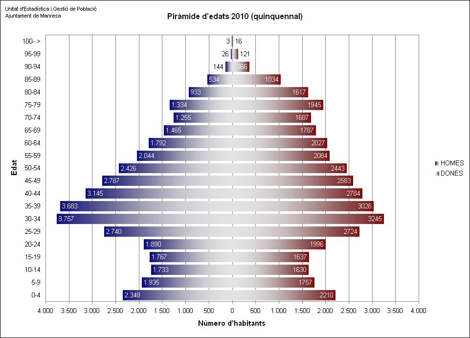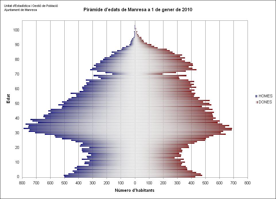 Manresa té una població de 76.460 habitants a 1 de gener de 2010