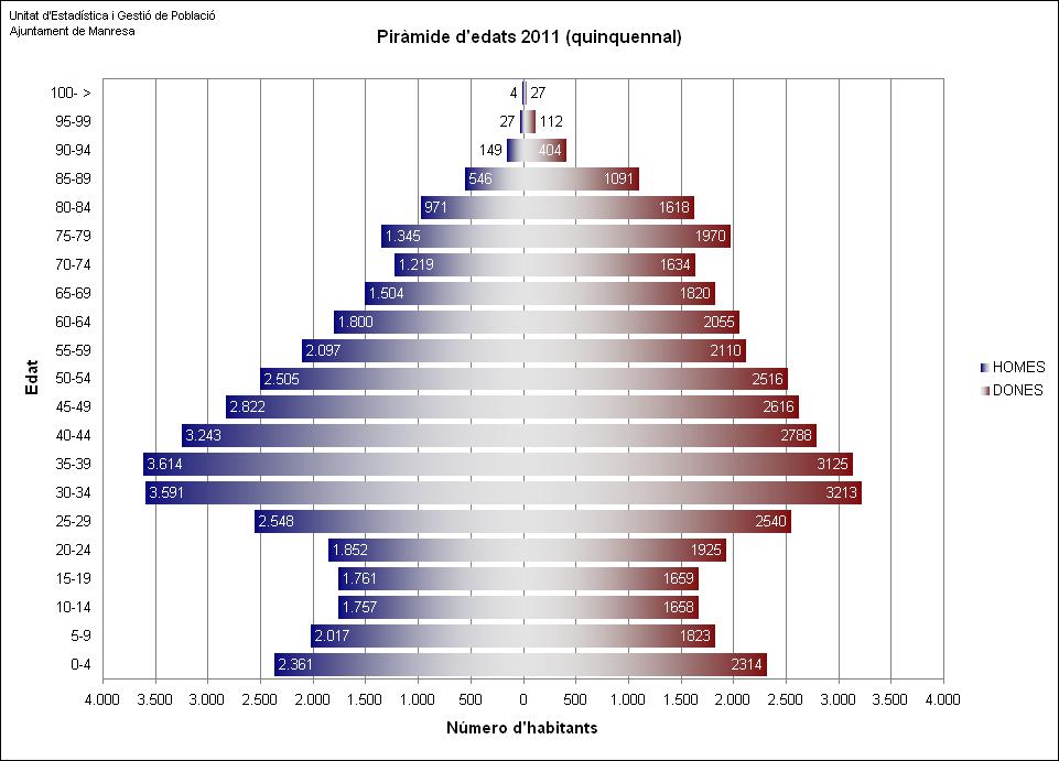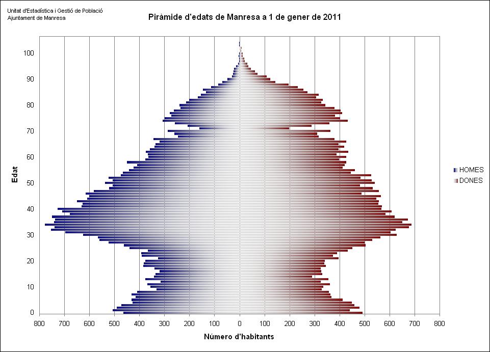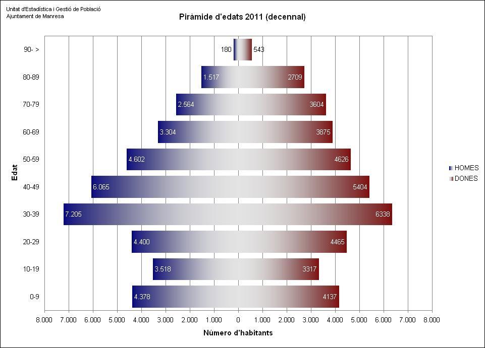 Manresa té una població de 76.751 habitants a 1 de gener de 2011