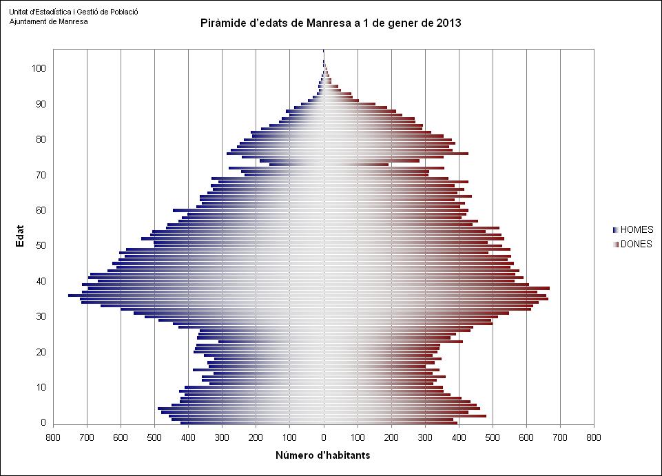 Manresa té una població de 76.245 habitants a 1 de gener de 2013