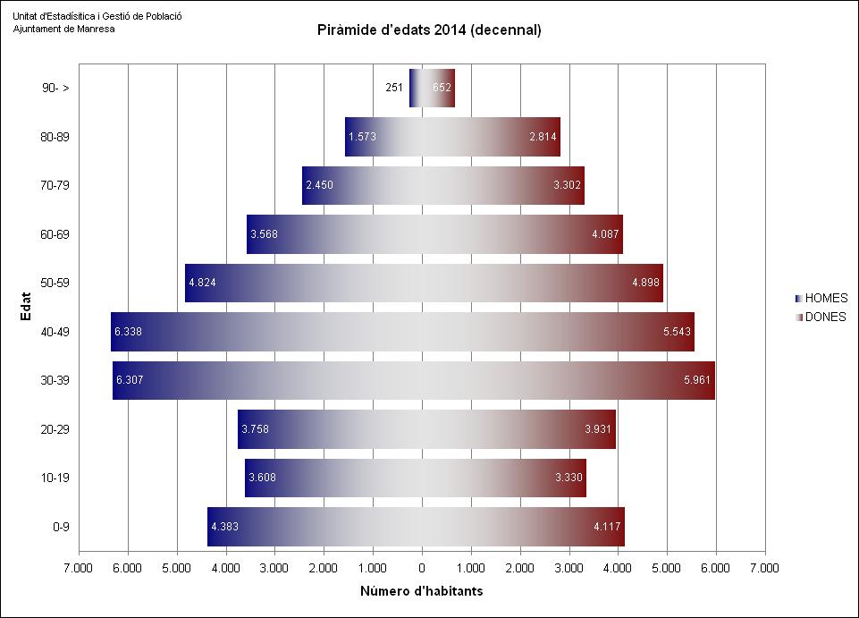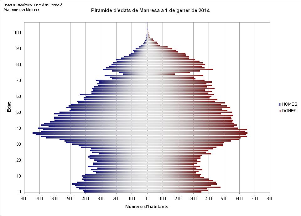 Manresa té una població de 75.695 habitants a 1 de gener de 2014