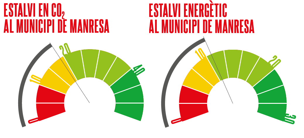 Des de l’any 2005, i fins el 2016, Manresa ha reduït el consum d’energia en un 11% i les emissions associades en un 19%. Aquest descens prové, principalment, d’un menor consum en el sector domèstic (d’un 23%), i de reduccions considerables en consums d’aigua i generació de residus. I tot i que el transport també ha disminuït el seu consum d’energia, ho ha fet en un percentatge molt més petit (un 4%), tot i ser responsable d’un 47% del total d’emissions del municipi.
