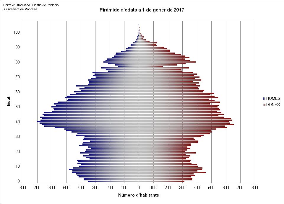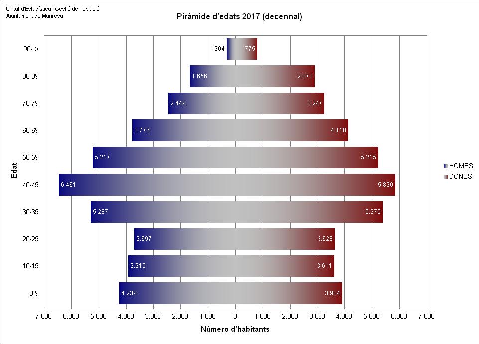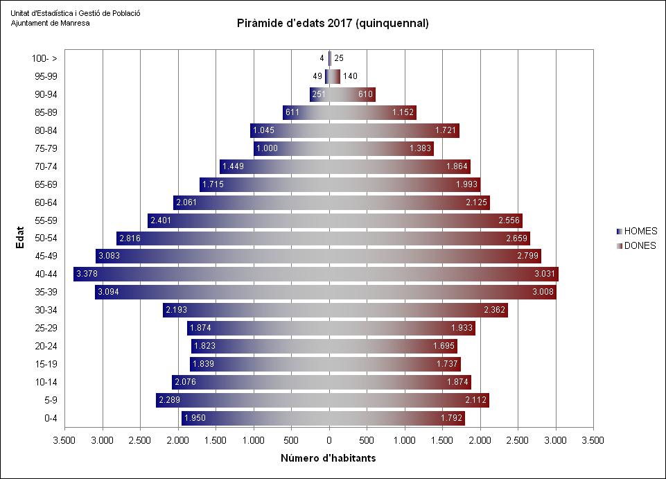 Manresa té una població de 75.572 habitants a 1 de gener de 2017