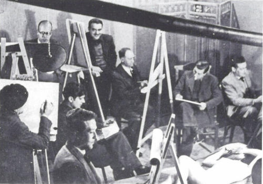 *Imatge: Sessió de dibuix al natural a la Gàbia. J. Padró, P. Carreras, E. Basiana, J. Vilanova, E. Vilajosana, J. Codina, P. Armengou i A. Corrons.