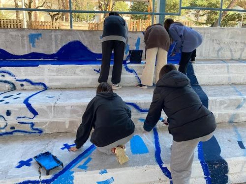 Amb els joves participants tant del barri com de l'institut es va estar treballant quins elements podia tenir el mur. La proposta més votada va ser una mirada de pau, més necessària que mai avui en dia. Es va elegir com a color el blau. A partir d’aquí, Llukuter ha dissenyat la proposta i ha realitzat el mural amb la participació dels joves.