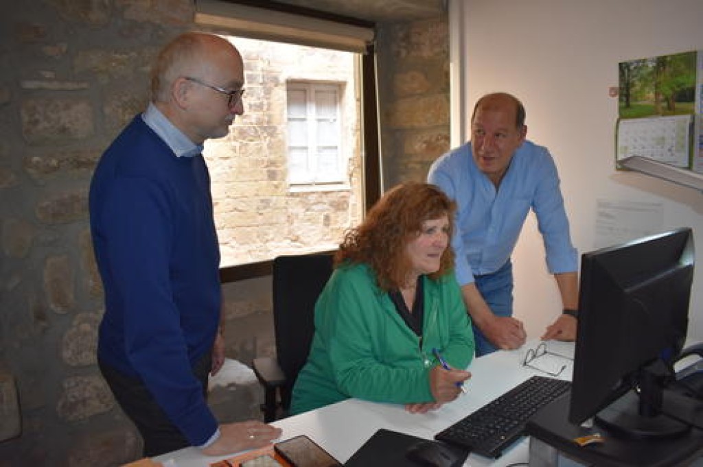 - Foto: El regidor de Nova Ciutadania i Cooperació, Jamaa Mbarki El Bcahir; i els tècnics municipals responsables del servei, Cèlia Barreda Arnao i Josep Vilamau Vila.