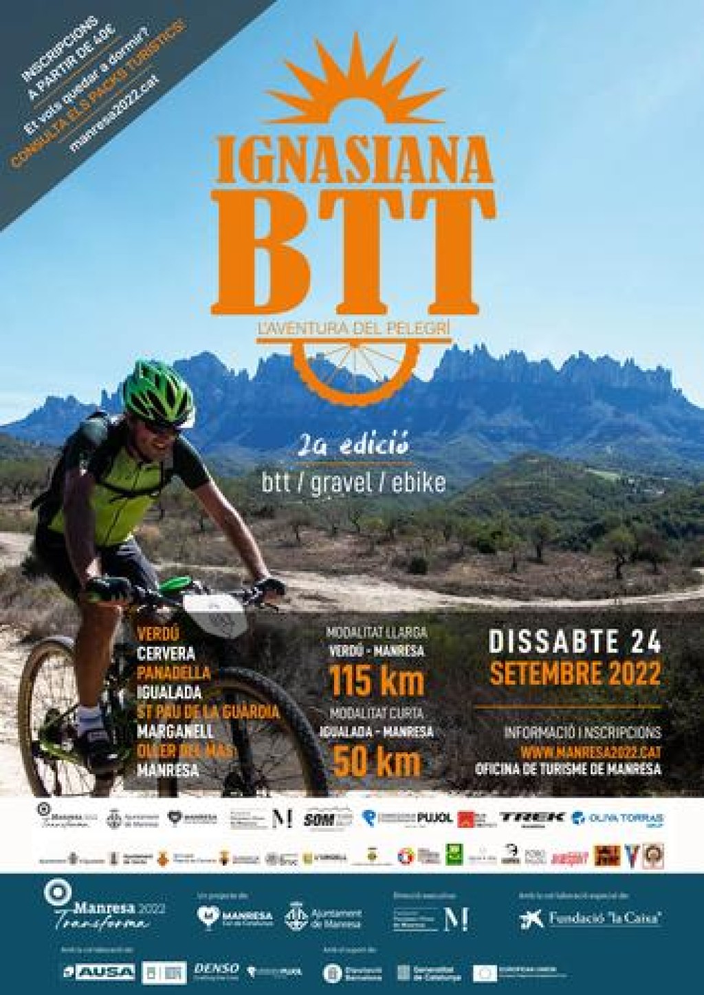 La Ignasiana BTT és un itinerari en BTT autoguiat en GPS d’aproximadament 115 quilòmetres que ressegueix les tres últimes etapes del Camí Ignasià de Verdú a Manresa, passant per Cervera, Igualada, Marganell i la falda de Montserrat. És una vivència esportiva no competitiva que convida a descobrir els atractius turístics i paisatgístics dels municipis per on transcorren els darrers quilòmetres del Camí Ignasià, els mateixos indrets que va travessar Ignasi de Loiola ara fa exactament fa 500 anys, mentre es practica esport. Amb l’objectiu de potenciar el vessant turístic de l’esdeveniment, des de Manresa Turisme s’està treballant per a poder oferir packs turístics que aviat estaran disponibles i que complementaran la inscripció a l’activitat amb una experiència turística a Manresa.