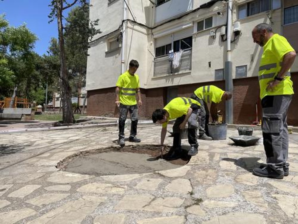 03/06/2022El projecte —que complementa en el programa ‘Barris i Comunitat’ desplegat al Xup— permet donar feina a tres persones del barri que es trobaven en situació d’atur, que a la vegada es formaran en manteniment polivalent de l’espai públic, fent tasques de reparacions, arranjaments i pintura, entre altres. També s’ha contractat un monitor que també es trobava en situació d’atur.