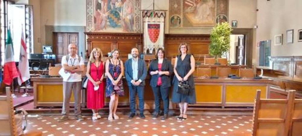 *Imatge: Rebuda de la delegació bagenca a Prato, per part del president del consell municipal, Gabriele Alberti, i de la tinent d'alcalde d'Innovació i Smart City, Benedetta Squittieri.