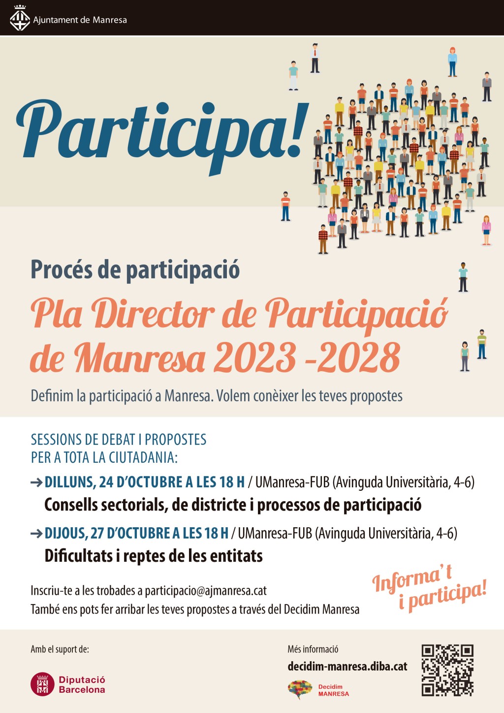 L'Ajuntament de Manresa convoca dues sessions ciutadanes per elaborar el nou Pla Director de Participació