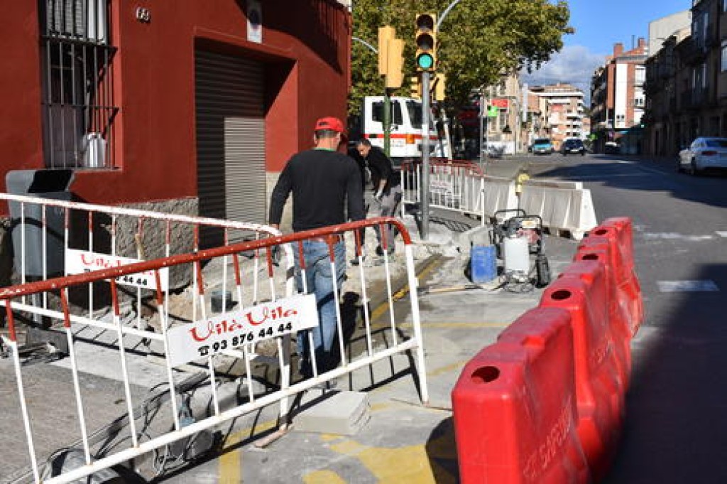(*) Peu de foto: Treballs de millora de la vorera i rebaix del pas de vianants a la cruilla de la plaça Mallorca amb la carretera de Santpedor