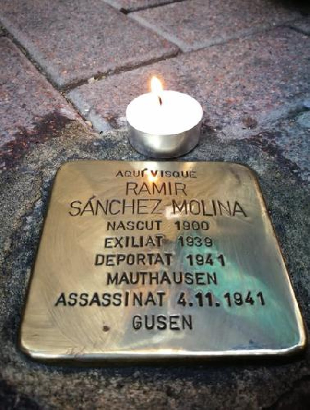 (*) Peu de foto: Stolpersteine dedicada a Ramir Sánchez, al carrer de Sant Francesc, 12
