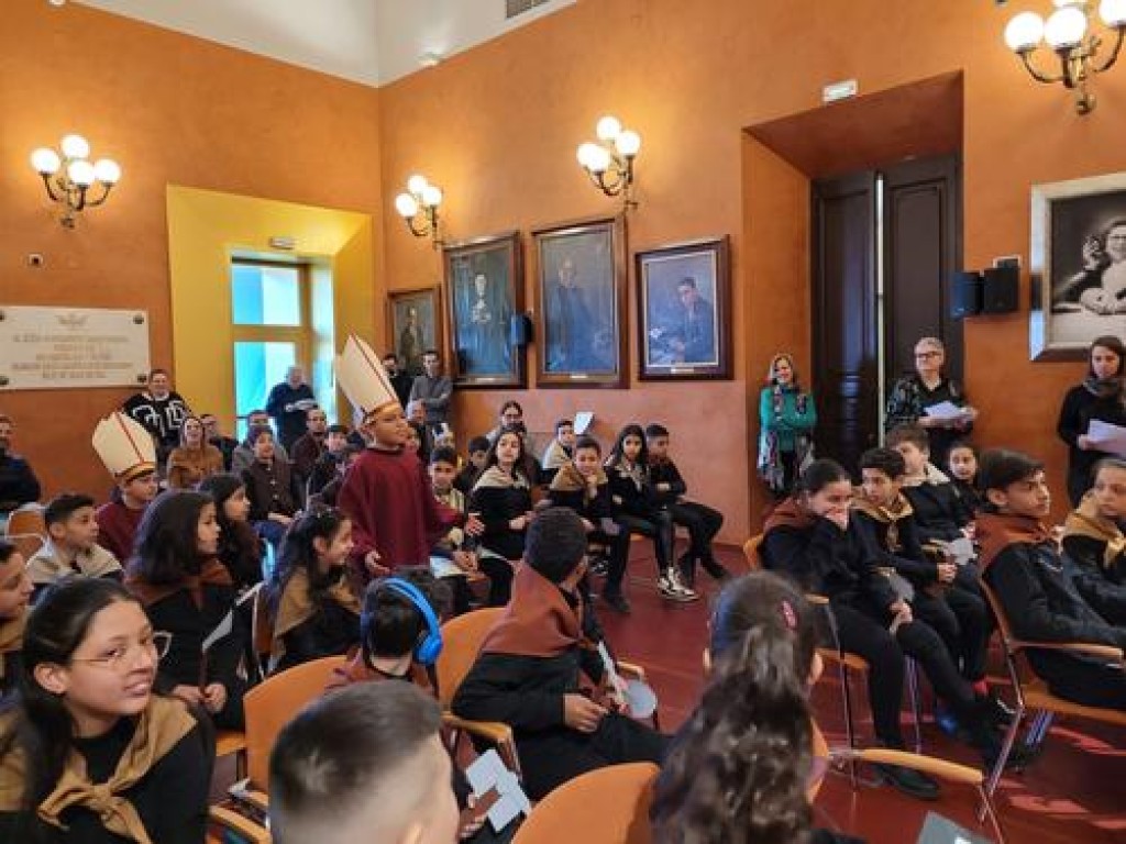 17/02/2023El Saló de Sessions de l’Ajuntament de Manresa ha celebrat aquest matí un dels seus actes tradicionals de la Festa de la Llum: El pregó infantil. Enguany, ha anat a càrrec de l’alumnat de 5è i 6è de primària de l’Escola Pare Algué, que han evocat de forma didàctica i divertida els principals fets de la construcció de la Séquia i el Misteri de la Llum.