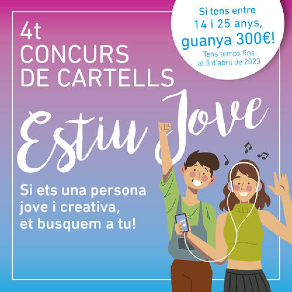La regidoria de Joventut de l’Ajuntament de Manresa ha convocat la quarta edició del concurs de cartells d’Estiu Jove, obert a la participació de persones joves d’entre 14 i 25 anys. Aquest cartell servirà per crear tot el material de difusió de la programació d’activitats de l’Estiu Jove 2023. El cartell guanyador, a més de ser la imatge de l’edició, n’obtindrà un premi de 300 euros.