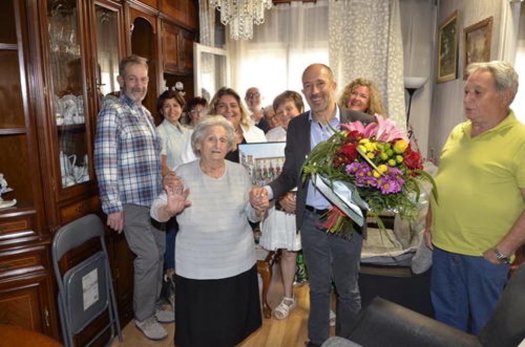 08/05/2023L’alcalde de Manresa, Marc Aloy Guàrdia ha visitat avui Amparo Asensio Salvador per lliurar-li un obsequi i un ram de flors, en nom del consistori, amb motiu del seu 100è aniversari.