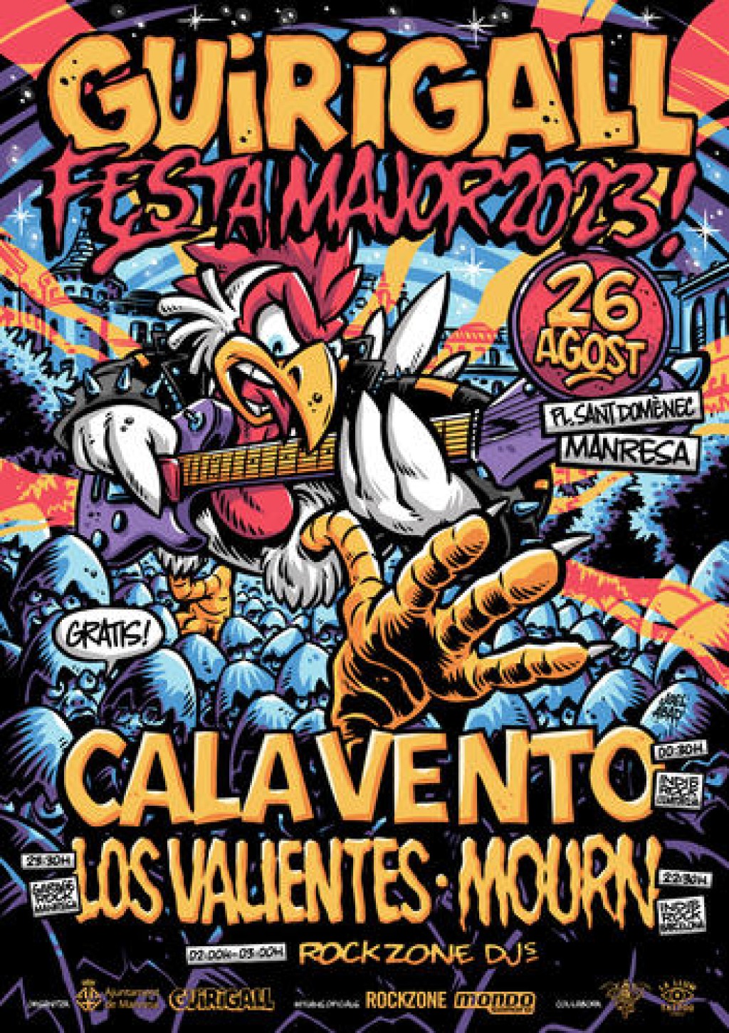 Cala Vento, Los Valientes, Mourn i Rockzone DJs són els quatre grups que actuaran en el marc de la primera edició del Guirigall FM, un espai per a la música allunyada dels circuits comercials, que animarà la plaça Sant Domènec de Manresa la nit del dissabte 26 d’agost. El dia abans la Cobla Orquestra Selvatana actuarà tarda i nit a la plaça Porxada, i els DJ de moda Arzzett, Oscar Nadal i Kevin Leal punxaran a la Festa Cocotown.