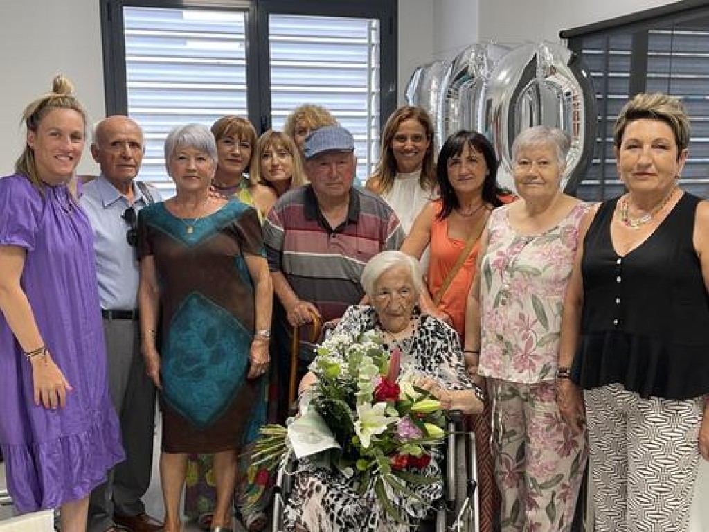 Familiars i personal del centre li han preparat una petita festa, en la qual també ha rebut la Medalla Centenària de la Generalitat de Catalunya i ha bufat les espelmes dels seus 100 anys.