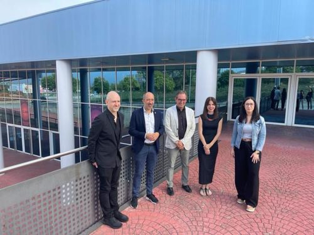 (*) Peu de foto: Esteve Soler MIralles (director del Clam), Marc Aloy Guàrdia (alcalde de Manresa), Joan Carles Batanés Subirana (alcalde de Sant Fruitós), Alba Pérez Subirana (alcaldessa de Navarcles) i Tània Infante Martínez (regidora de Cultura i Llengua de l’Ajuntament de Manresa), als cinemes Bages Centre