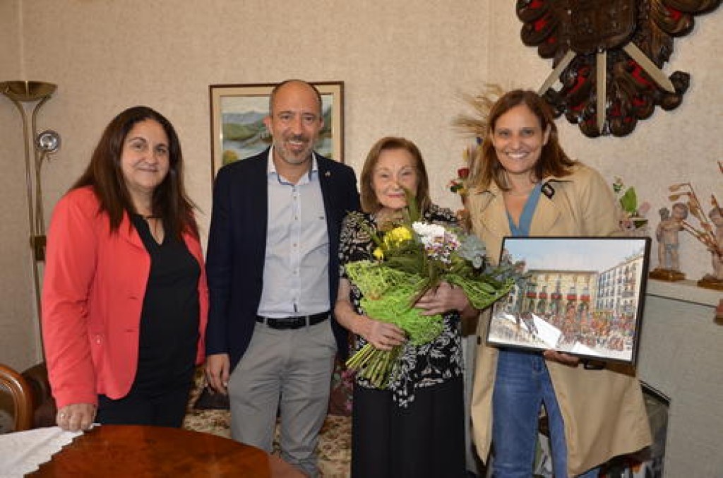 17/10/2023L’alcalde de Manresa, Marc Aloy Guàrdia, i la regidora de Drets Socials i Persones Grans, Mariona Homs Alsina, van visitar ahir Marina Grandia Aymerich, per lliurar-li un obsequi i un ram de flors, en nom del consistori, amb motiu del seu 100è aniversari.