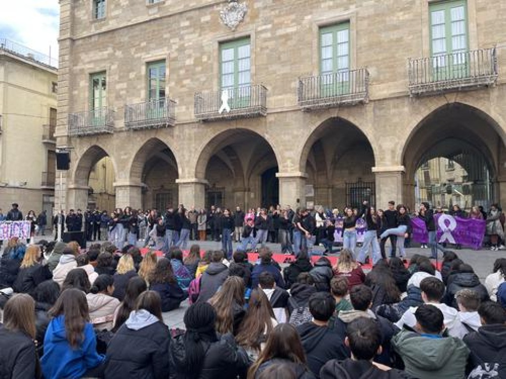 Els joves omplen la plaça Major de Manresa per fer un crit de sensibilització i rebuig contra la violència masclista
