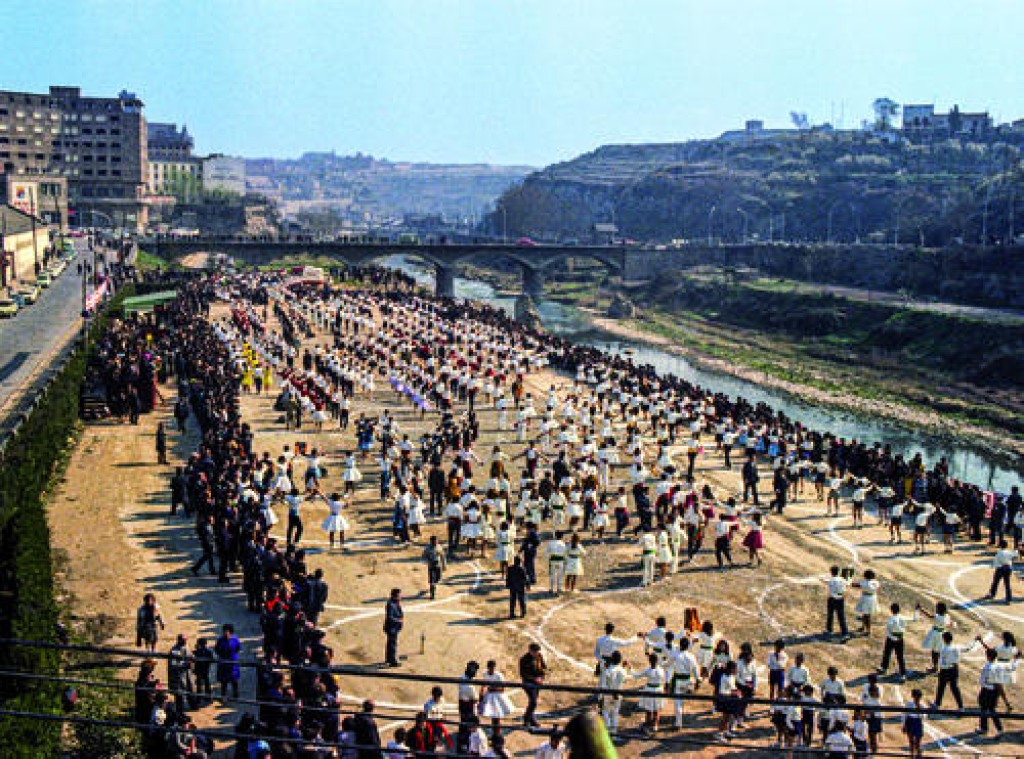 (*) Peu de foto: Una de les fotografies del calendari corresponent al concurs nacional de colles sardanistes al Passeig del Riu, el 1970. Arxiu família Llobet Peiró.