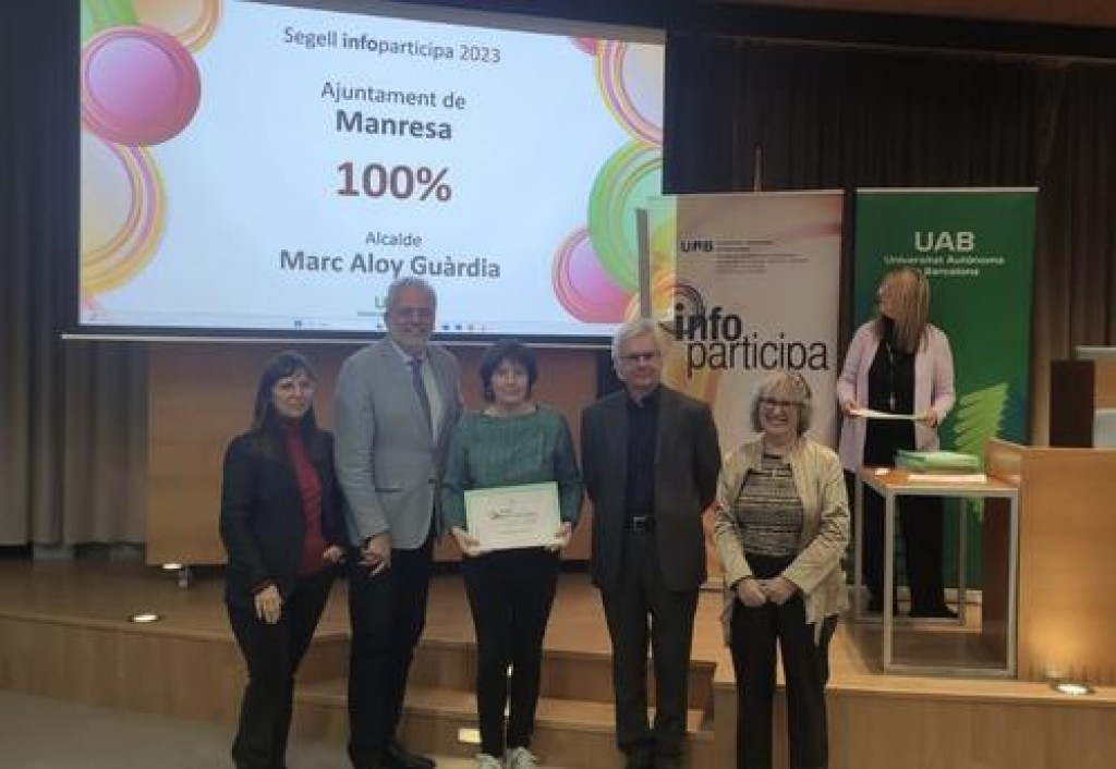 L’Ajuntament de Manresa ha aconseguit, per desè any consecutiu, el màxim nivell de transparència, el 100%. Així ho acredita l’obtenció del Segell Infoparticipa, un guardó atorgat pel grup de recerca Comunicació Sonora, Estratègica i Transparència (ComSET) de la Universitat Autònoma de Barcelona (UAB), que reconeix la transparència informativa de les webs de les institucions.