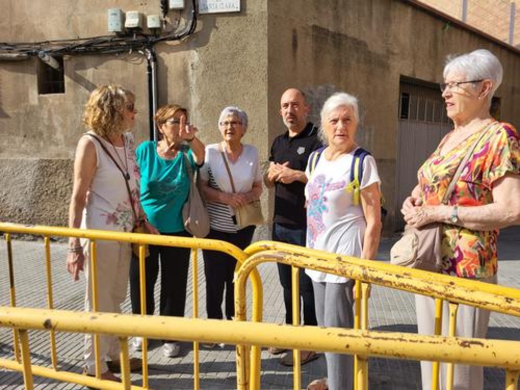 (*) Peu de foto: l'alcalde Marc Aloy acompanyat de veïnes de les Escodines durant la visita