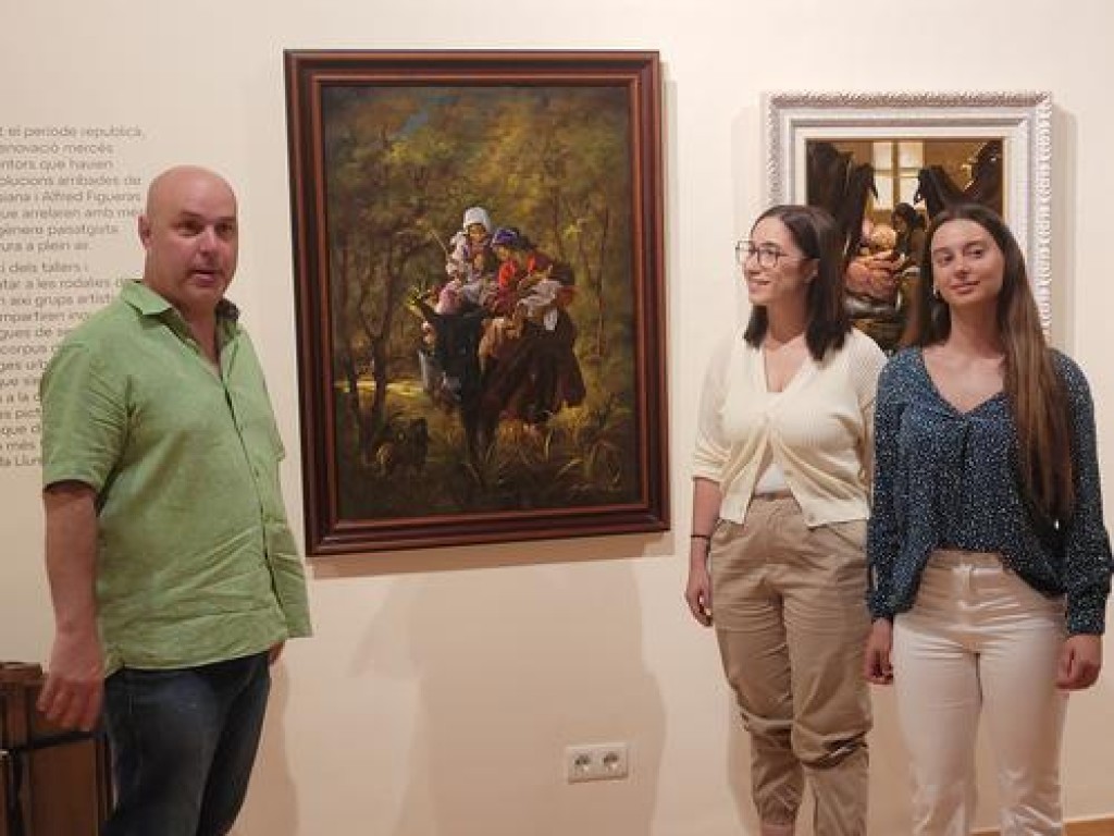 (*) Peu de foto: (d'esquerra a dreta) Ovidi Covacho Closa, Tània Infante Martínez i Stefania Baiasu a la sala gran del Centre Cultural del Casino on aquests dies s'acabarà de realitzar el muntatge de l'exposició.