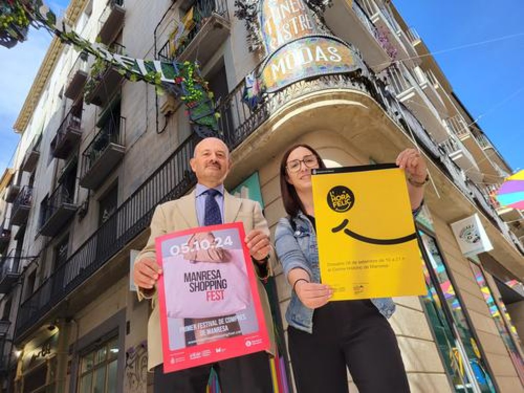 El dissabte següent, dia 5 d’octubre, tindrà lloc la primera ‘Manresa Shopping Fest’, una gran festa del comerç que neix amb la voluntat de tenir caràcter anual i que involucrarà tots els eixos comercials de la ciutat. Combinarà activitats, diversió i compres en un magnífic entorn: la ciutat de Manresa. Hi haurà gimcanes per als més petits, sessions de personal shopper, una xerrada de l’assessora d’imatge Marta Pontnou i actuacions musicals en directe. A la pàgina web de l’esdeveniment es pot trobar el programa sencer.