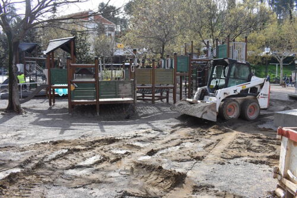 L'Ajuntament engega uns treballs per millorar el paviment del parc infantil de la plaça Espanya