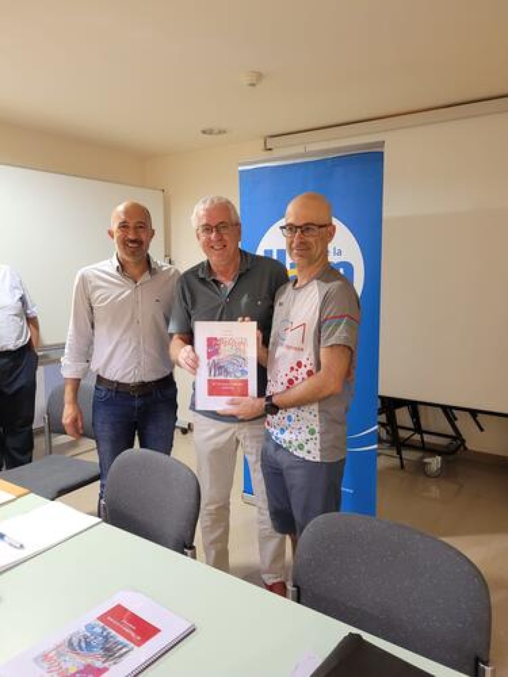 (*) Peu de foto: Foto Art Manresa pren el relleu del Club Atlètic Manresa. A la fotografia, d’esquerra a dreta, Marc Aloy Guàrdia (alcalde de Manresa), Jordi Roy Torras (president del Club Atlètic Manresa); i Bernat Bozzo Closas (president de Foto Art Manresa)