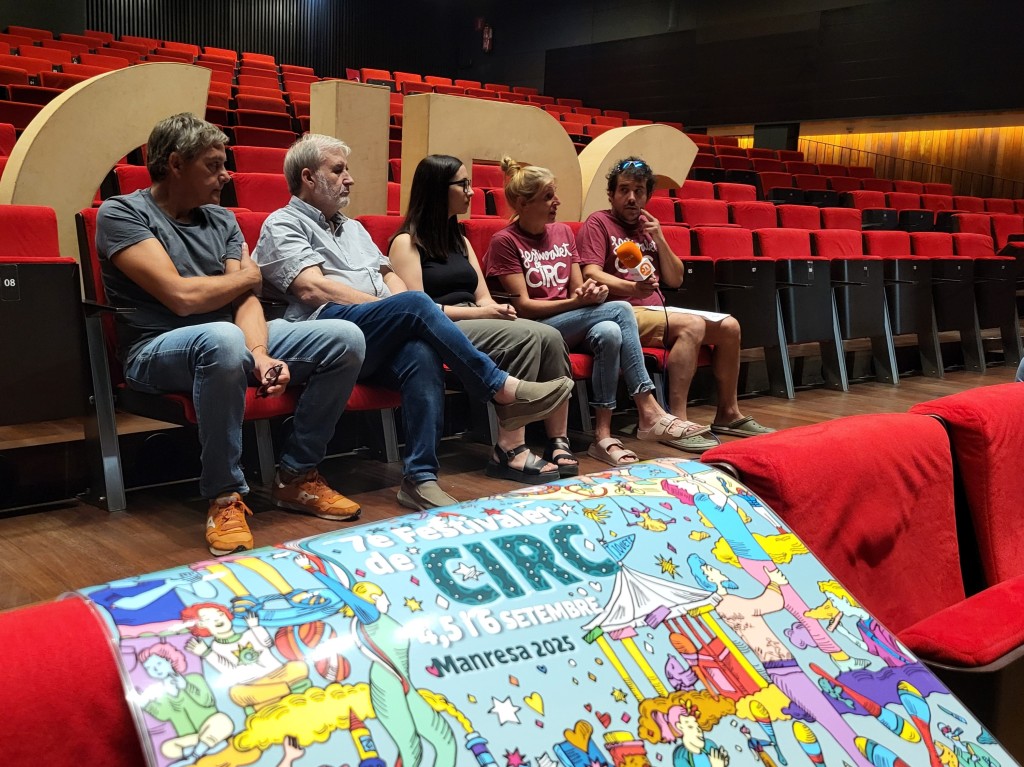 La programació del Festivalet s'ha presentat aquest migdia al Teatre Kursaal, una presentació que ha anat a càrrec de la regidora de Cultura i Llengua, Tània Infante Martínez; dels acròabates responsables de la direcció artística del Festivalet, Rat Serra i Arnau Serra; de Jordi Basomba Gonzalvo, gerent de Manresana d'Equipaments Escènics, i de Joan Morros Torné, coordinador de l'Associació Cultural El Galliner.
