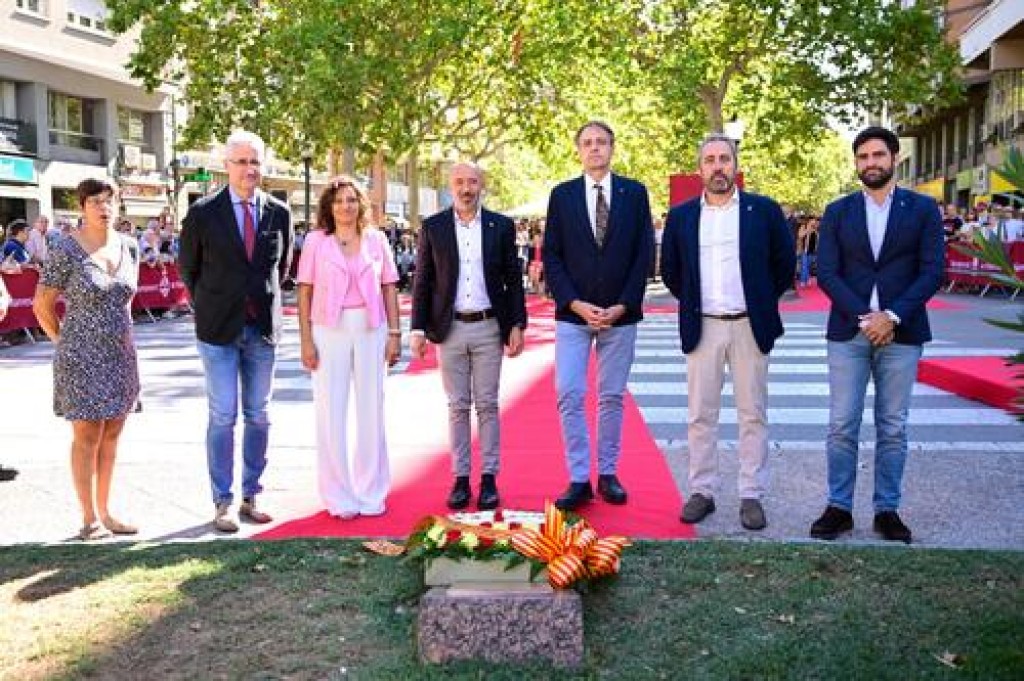 (*) Peu de foto: els representants dels grups municipals, encapçalats per l'alcalde Marc Aloy Guàrida, en l'ofrena floral, aquest dijous al matí