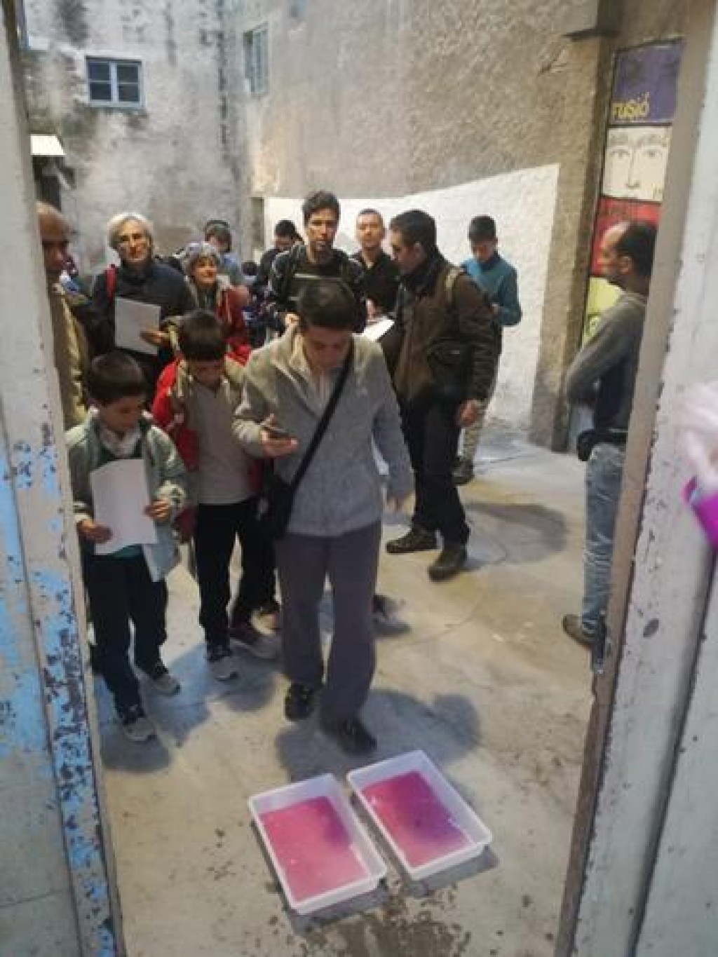 Després vam fer grups d'entre 2 i 6 persones. Els grups es van coordinar per trobar punts d'aigua amb una aplicació als seus telèfons feta expressament per a l'ocasió, la qual els permetia entrar les dades, fotografies i sons que van recollir. Els participants repartits en 11 grups van fer censos auditius i visuals dels amfibis en 33 punts repartits per tot el municipi.