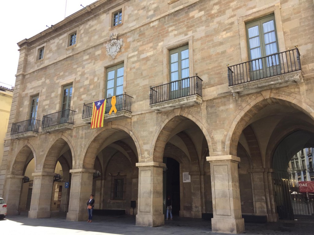 27/05/2019L'Ajuntament de Manresa va tornar a col·locar ahir al matí, l'endemà de les eleccions municipals i europees, el llaç groc i l'estelada a la façana, tal com estableix l'acord del Ple Municipal de la corporació. Havien estat retirats durant el període electoral per ordre de la Junta Electoral de Zona, i es van substituir per una pancarta amb el text "Llibertat d'opinió i expressió".