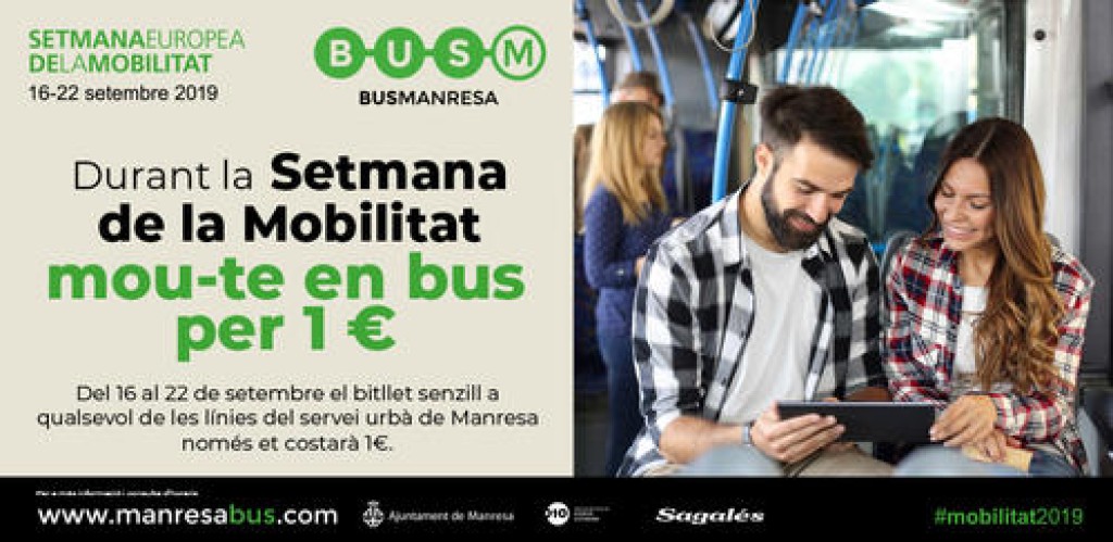 La setmana vinent el bitllet senzill del bus urbà de Manresa costarà només 1 euro. Aquesta és una de les accions que realitzarà l’Ajuntament de Manresa, a través de la regidoria de Mobilitat, dins la Setmana Europea de la Mobilitat, que se celebra del 16 al 22 de setembre.