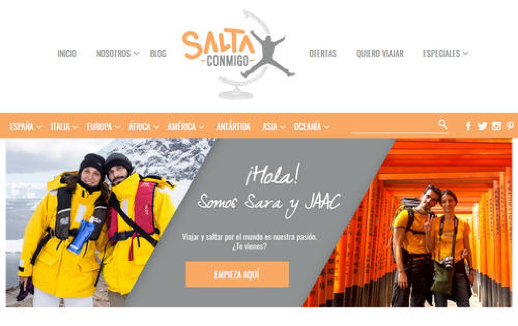“Salta Conmigo” és un blog de viatges professional nascut al 2007 i amb un ampli seguiment; el mes de maig de 2019 el blog va rebre 320.000 visites i té 110.000 seguidors a xarxes socials. Té entrades tant nacionals com internacionals, de destins catalans i de la resta de l’Estat, i dels 5 continents. La parella que el gestiona explica i fotografia les seves estades i, al mateix temps, dona consells idees sobre planificació o ofereix xerrades sobre com organitzar viatges i excursions similars.