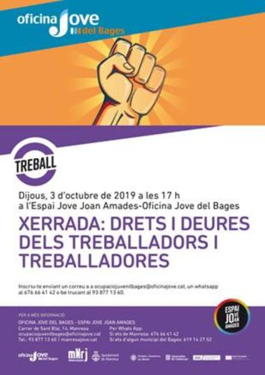 L'Oficina Jove del Bages organitza una xerrada sobre drets i deures laborals dels treballadors i treballadores