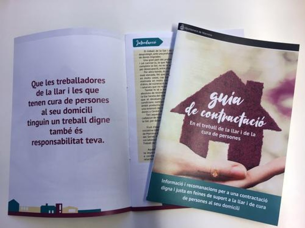 Fruit d’aquest anàlisi, l’Ajuntament de Manresa ha elaborat una guia de contractació, adreçada a famílies i particulars, en que s’explica el procés de contractació però també altres aspectes com la jornada laboral, el càlcul d’un sou just, el pagament de la seguretat social, etc. Per altra banda també s’ha editat un tríptic informatiu dirigit particularment a les persones treballadores d’aquest camp, per tal de que tinguin clars els drets que estipula la llei i així facilitar el seu reconeixement i evitar-ne la vulneració. Aquest segon material ha estat editat en català i castellà, per tal d’arribar al màxim de treballadores del camp, tenint en compte l’elevadíssima proporció de persones d’origen migrant.
