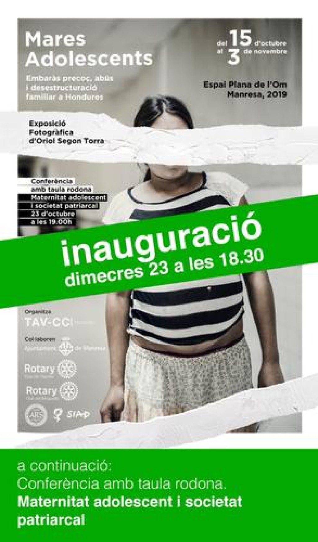 Demà dimecres, a les 18.30 h, s'inaugurarà a la sala de la Plana de l'Om l'exposició “Mares Adolescents, embaràs precoç, abús i desestructuració familiar a Hondures”, del fotògraf manresà Oriol Segon. La mostra es podrà visitar fins al 3 de novembre.