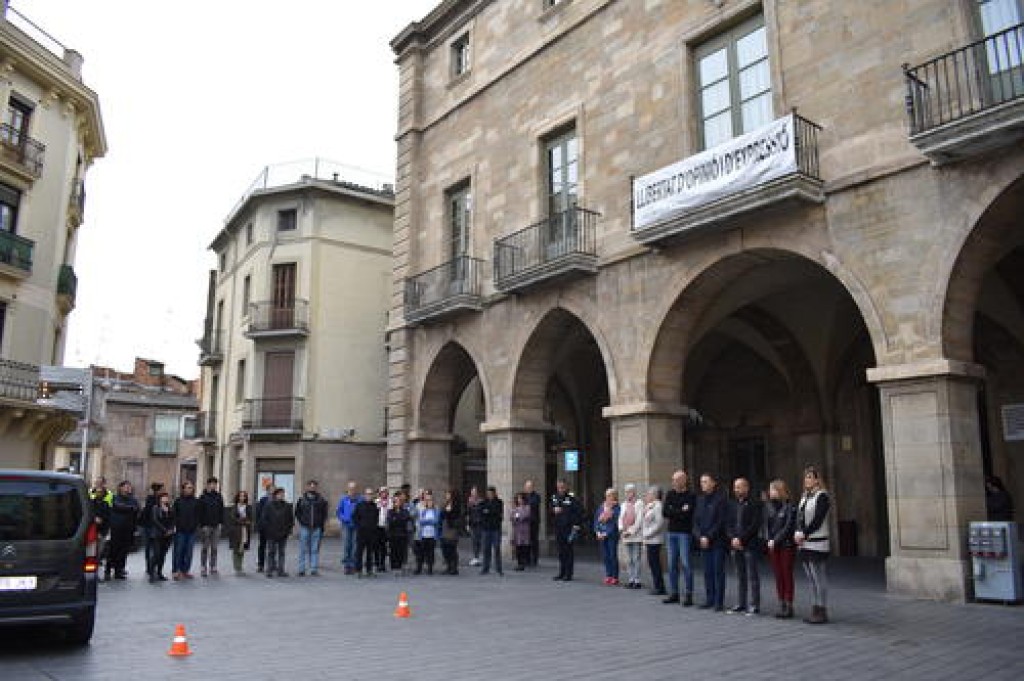 L'Ajuntament de Manresa ha dut a terme aquest matí, a la plaça Major, un minut de silenci per expressar la solidaritat amb la família de la víctima i les cinc persones desaparegudes a causa de la llevantada.