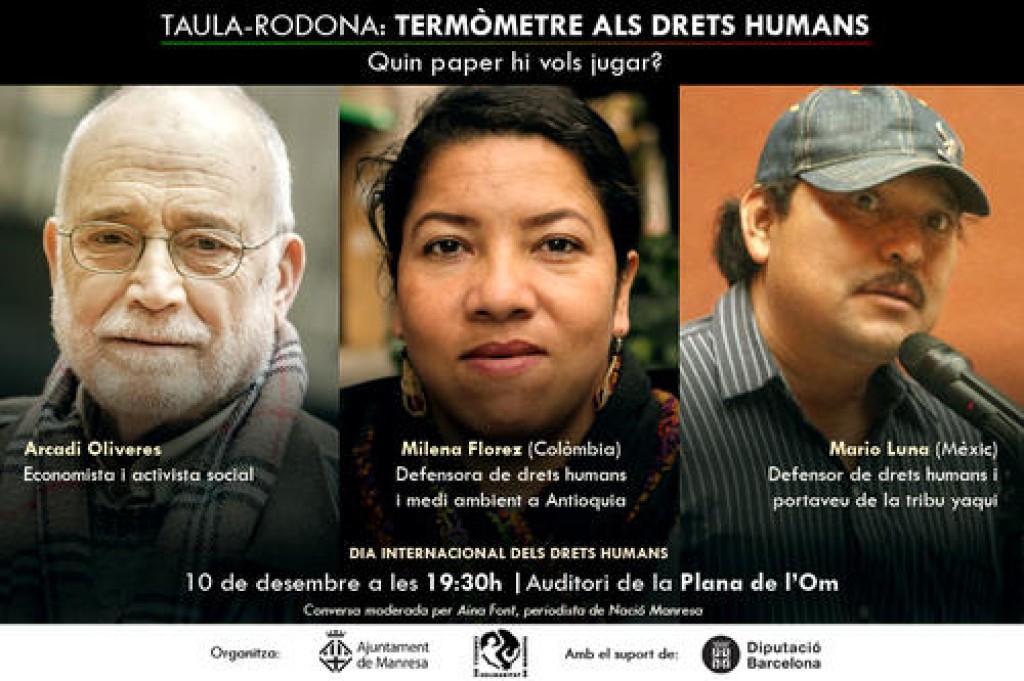 Arcadi Oliveres, Mario Luna i Milena Florez posaran el "termòmetre" als drets humans, demà a Manresa
