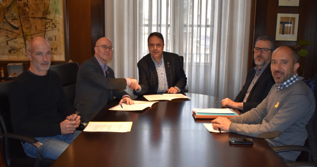 La signatura del conveni ha canat a càrrec de l’alcalde, Valentí Junyent, i el gerent d’Aigües de Manresa, Antoni Ventura, i també ha comptat amb la presència del primer tinent d’alcalde, Marc Aloy; i el regidor delegat d’Urbanisme i Mobilitat, David Aaron López.