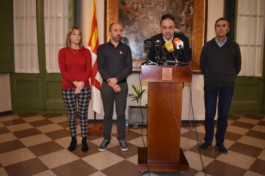 11/12/2019L'alcalde de Manresa, Valentí Junyent, ha llegit aquesta tarda una declaració institucional, a la Sala de Columnes de l'Ajuntament de Manresa. L'han acompanyat el primer tinent d'alcalde i regidor de Presidència, Marc Aloy; el regidor de Seguretat Ciutadana i Protecció Civil, Joan Calmet; i la regidora de Feminismes i LGTBI