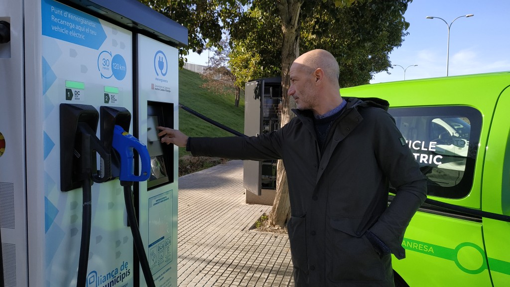 Manresa, 24 de desembre de 2019.- Manresa estrena aquesta setmana dos nous punts de recàrrega de vehicle elèctric, que estan situats al carrer de Joan Fuster, al polígon dels Trullols. Els aparells permeten recàrregues de fins a 50 kw, i serà possible carregar fins a quatre vehicles al mateix moment. D’aquesta manera, en només mitja hora un vehicle de 250 quilòmetres d’autonomia podrà carregar la bateria del 20 al 90%.