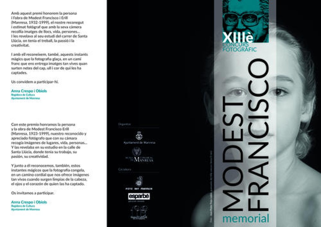 Arriba a la tretzena edició el premi de fotografia que duu el nom d’aquest fotògraf manresà que va ser Modest Francisco i Erill (Manresa 1932 – 1999). La primera convocatòria es va fer el 2001 i es va repetir anualment fins la sisena edició, a partir de la qual va passar a tenir una periodicitat biennal.